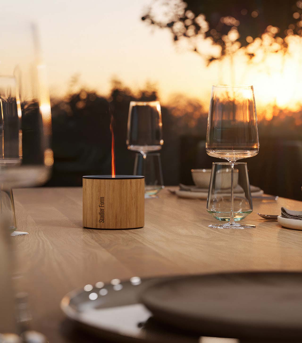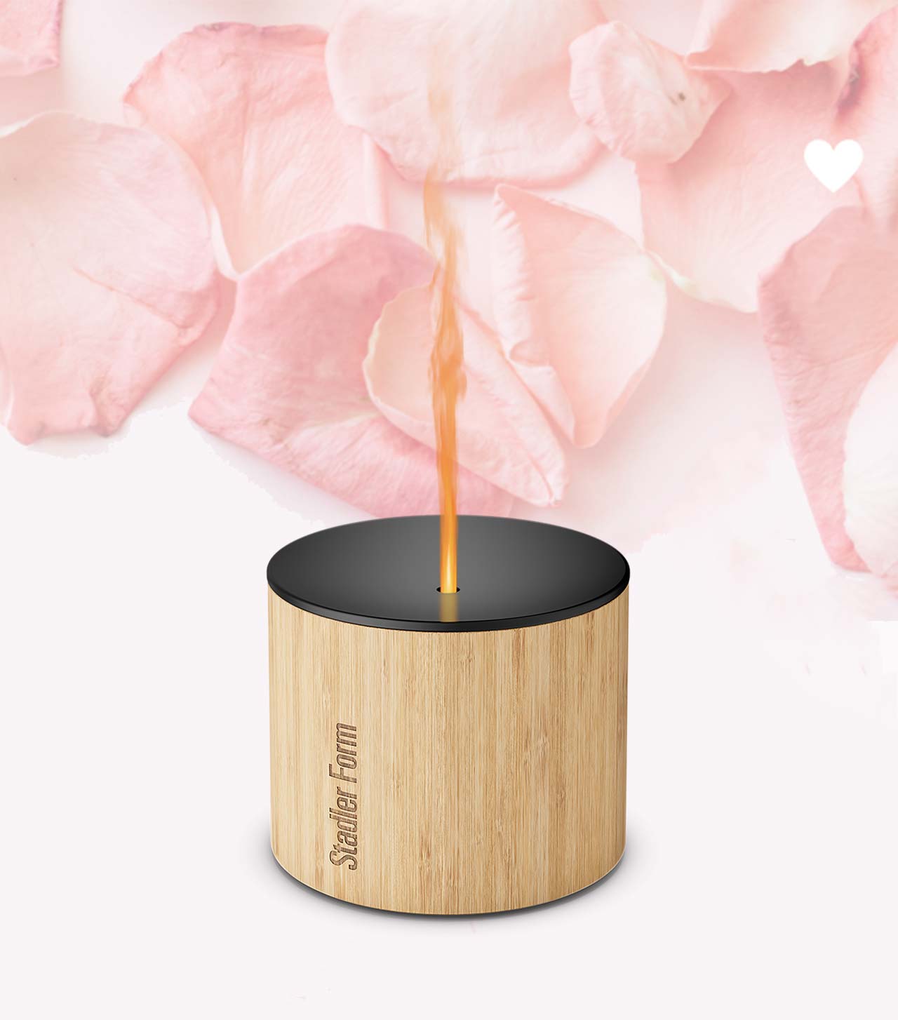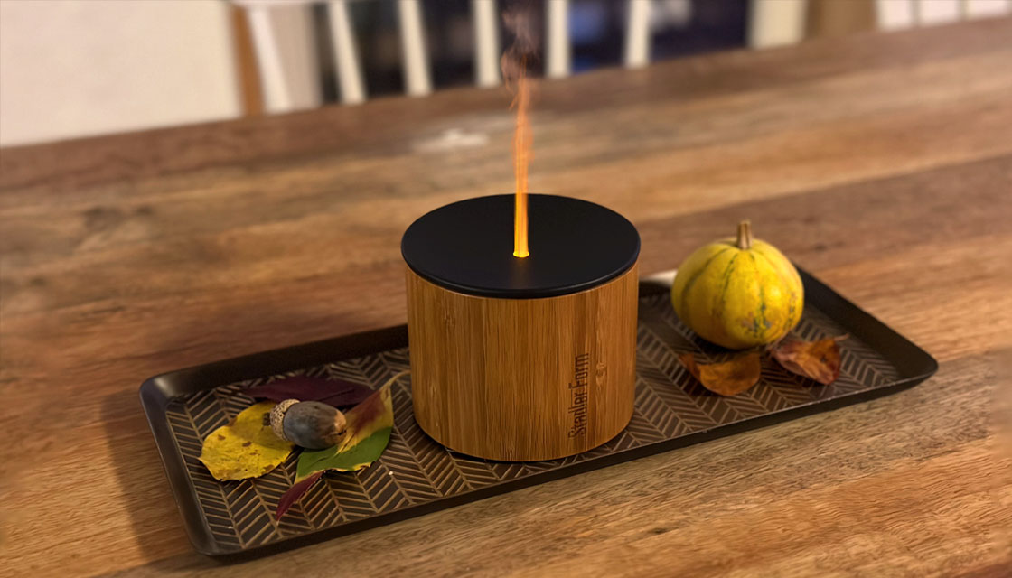 Svjetlo boje ćilibara pruža umirujuću igru plamena sa hladnom maglom. Svjetlo se može prigušiti i isključiti. Nora radi do 18 sati kada je priključena. Zahvaljujući USB-C kablu i njenoj punjivoj bateriji, može se koristiti i u pokretu do 7 sati. Njen crni aluminijumski poklopac i održivo kućište od bambusa uljepšavaju svaku prostoriju. Zahvaljujući zaštiti od prskanja vode, Nora je pogodna i za upotrebu na otvorenom. Tokom ljetnjih mjeseci se uz eterično ulje Repel (opciono, kupuje se odvojeno) može koristiti za rasterivanje dosadnih insekata i komaraca.