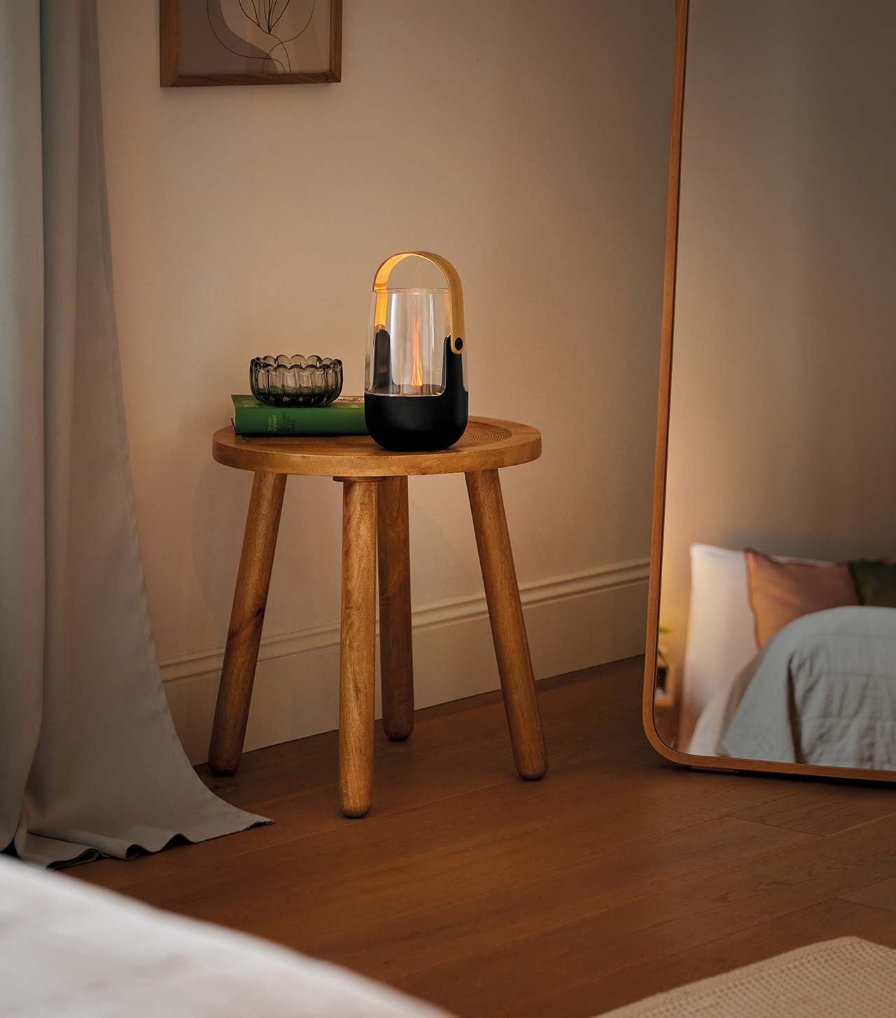 Sophie little je više od obične svjetiljke i aroma difuzera – ona je prelijep dodatak za svaki unutrašnji ili spoljašnji prostor. Njeno svjetlo u boji jantara pruža pravi efekat plamena, koji se takođe može prigušiti. Radi sa integrisanom punjivom baterijom do 7 sati i otporna je na prskanje vode. Elegantan dizajn upotpunjuje prelijepi držač od bambusa, čineći je pravom zvjezdom gde god da je postavite. Uključen je USB-C kabl za punjenje, što znači da će uvijek biti spremna da osvjetli vaš dan ili noć.