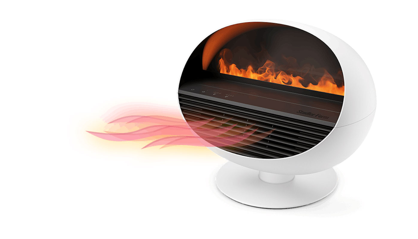 Kada se aktivira i funkcija grijalice, Erik emituje toplotu i stvara osećaj udobnog otvorenog ognjišta.