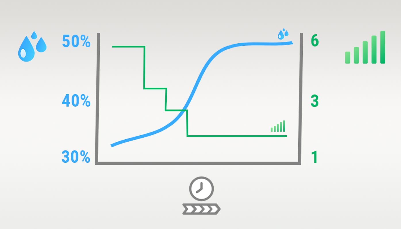 U automatskom režimu, intenzitet ovlaživanja se samostalno reguliše – za brzo postizanje i održavanje optimalne vlažnosti vazduha.