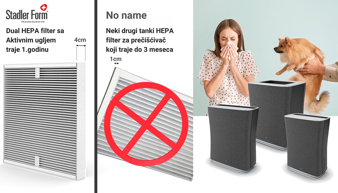 2 x Dvostruki Filter™ (HEPA H12 & aktivni ugalj) ,2 x tekstilni pre-filter |